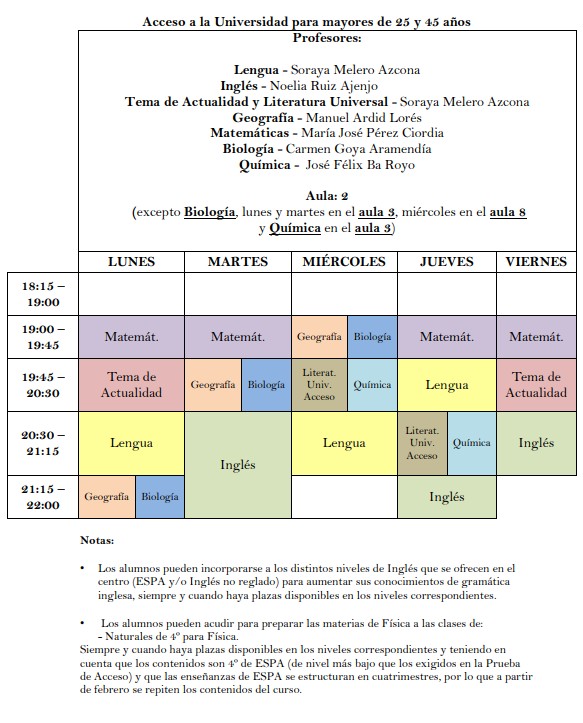 Acceso a la Universidad para mayores de 25 y 45 años