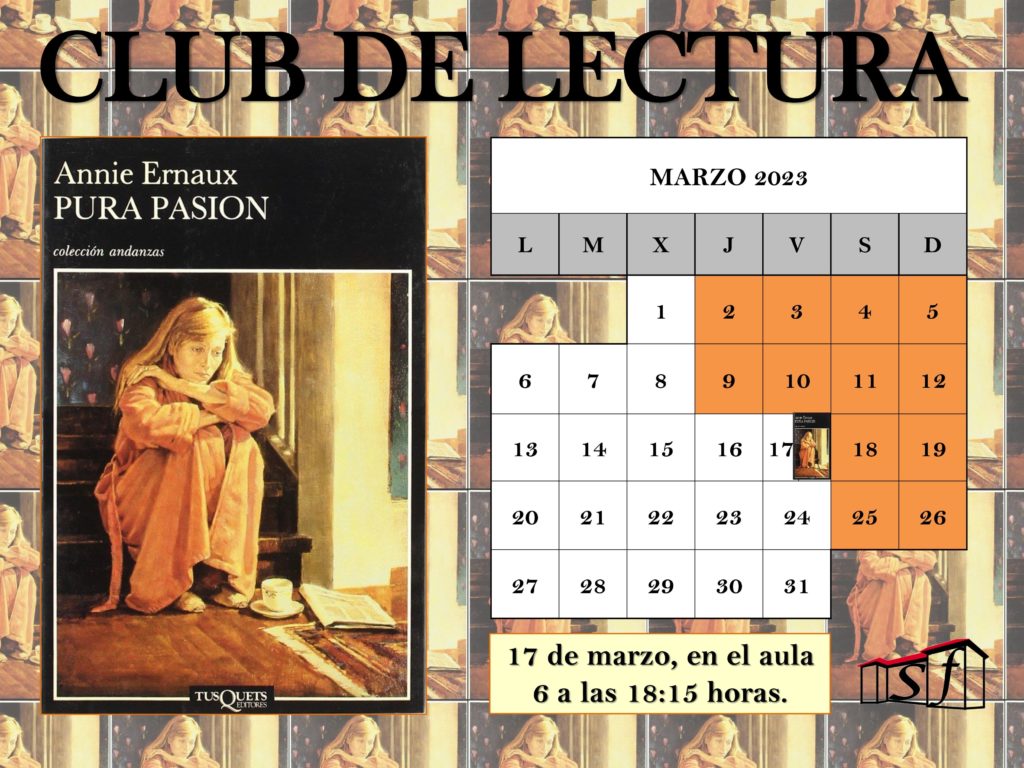 Club de lectura - Pura pasión. Aula 6 a las 18:15h. CEA San Francisco