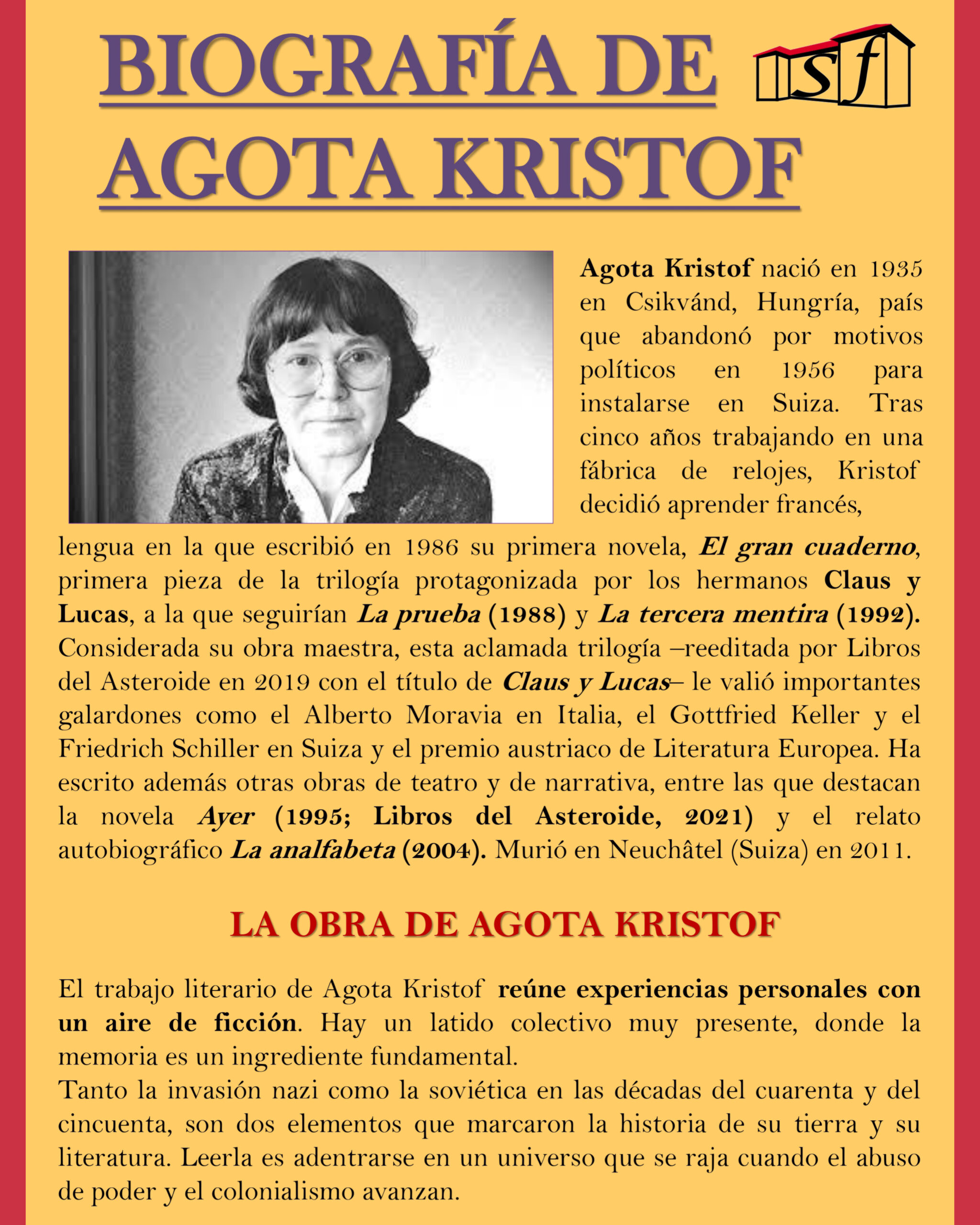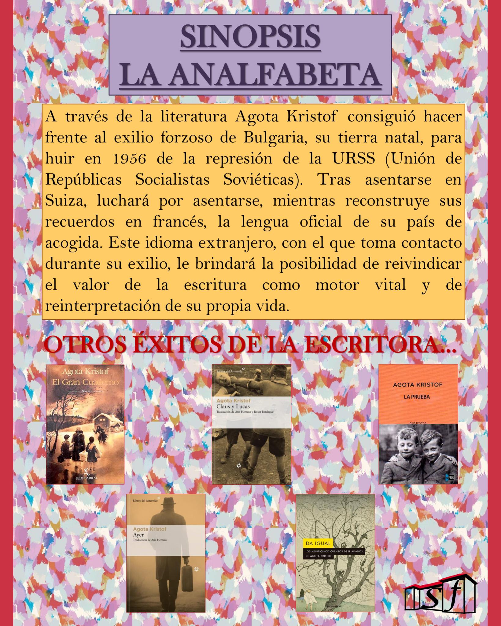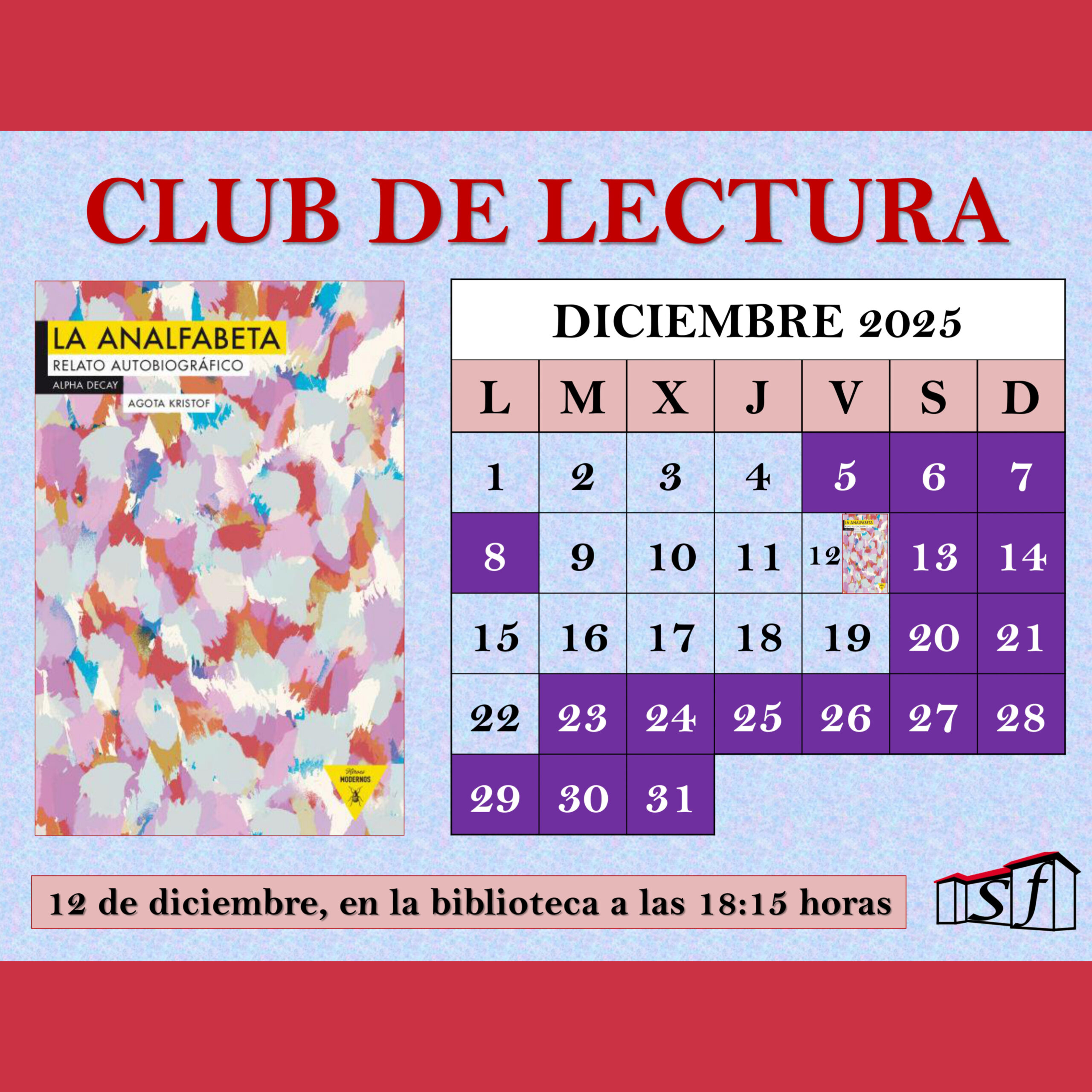 Club de lectura – La analfabeta. Biblioteca las 18:15h.