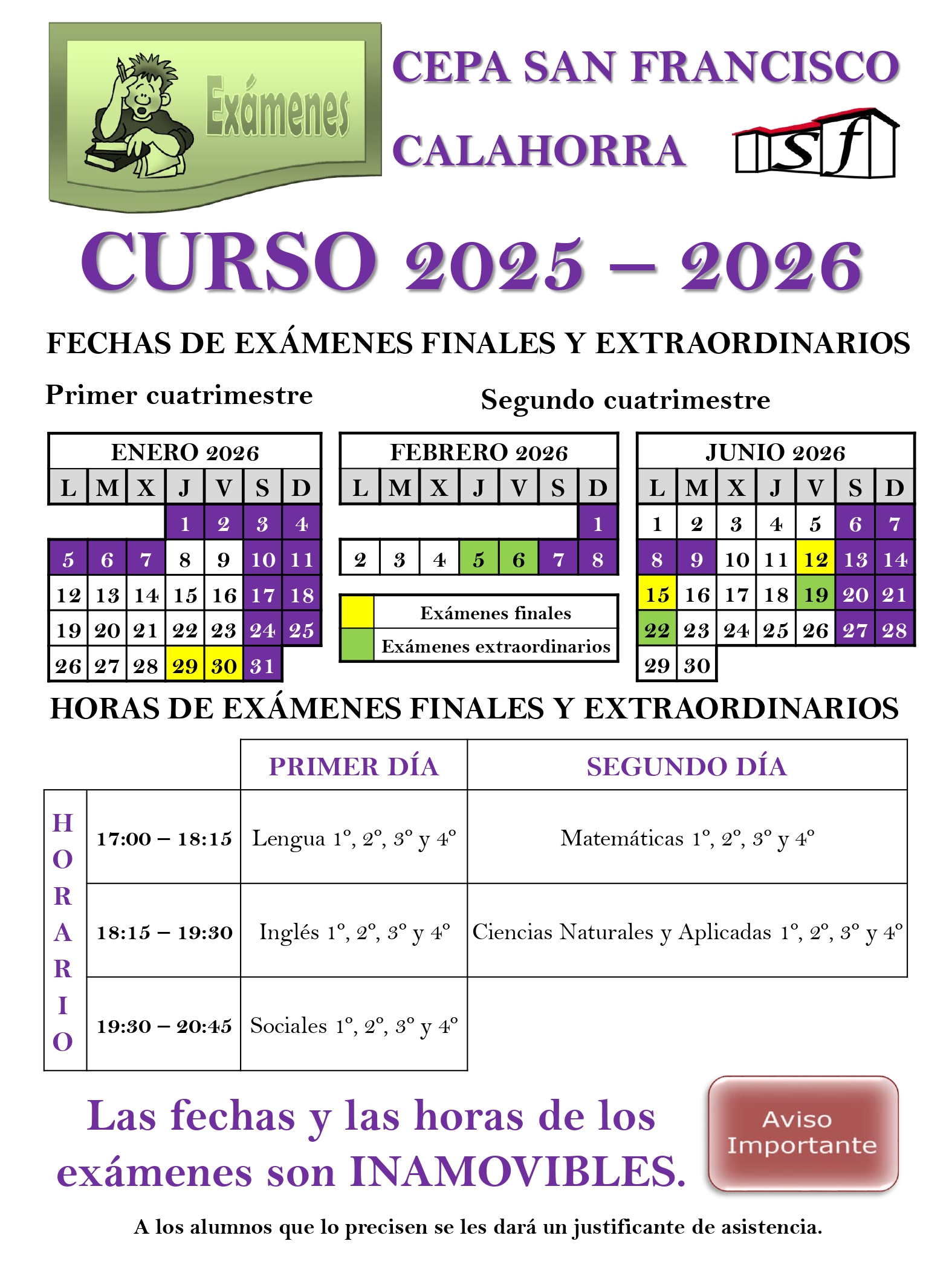 Fechas exámenes de ESPA y ESPA a DISTANCIA. Curso 2025/26